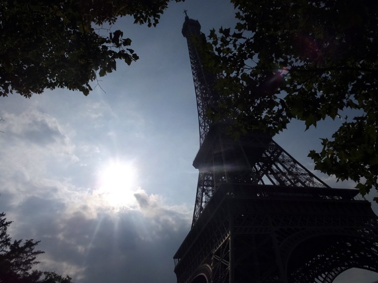 We saw the Eiffel Tower, but did not go up it. It’s a hard thing to photograph in an interesting way. Here’s one attempt.
