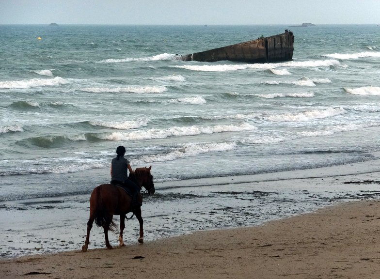 All over Normandy, memories of the war are kept alive by artifacts that remain to this day, such as this part of the artificial harbor assembled in the days following D-Day.