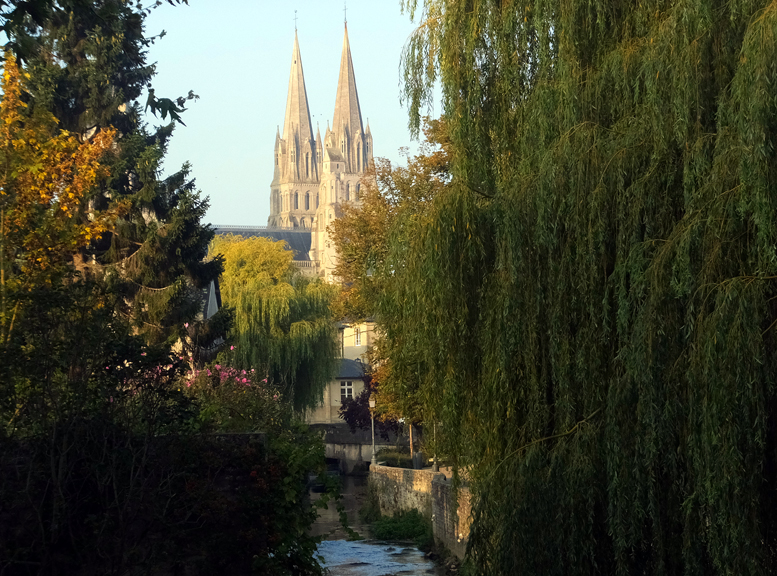 As in many European towns, a church or cathedral provides a convenient orientation point. The spires of Cathedrale Notre Dame de Bayeux are the first thing travelers see when approaching the town.