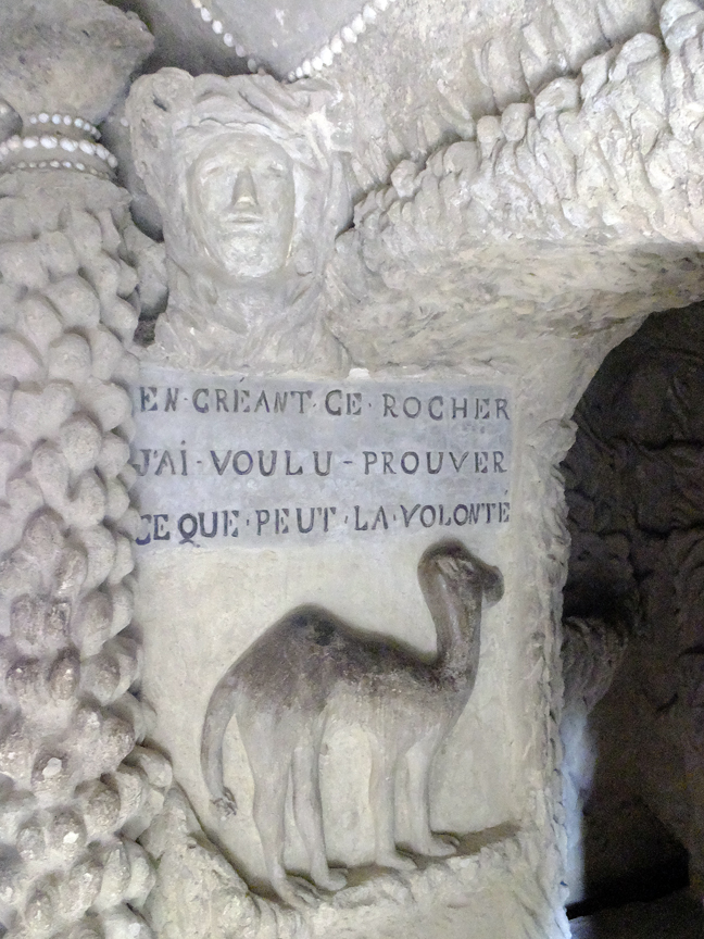 The inscription above the camel translates, "By creating this rock I wanted to prove what willpower can do."