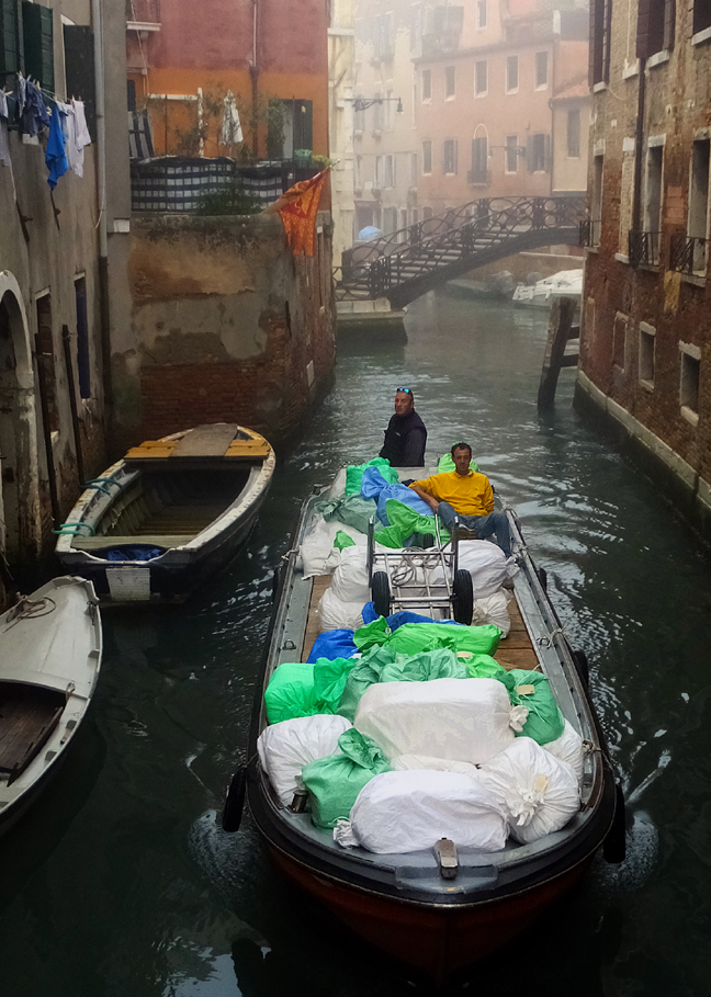 As I wandered, I discovered that every function that we take for granted on land has been adapted to the water in Venice.