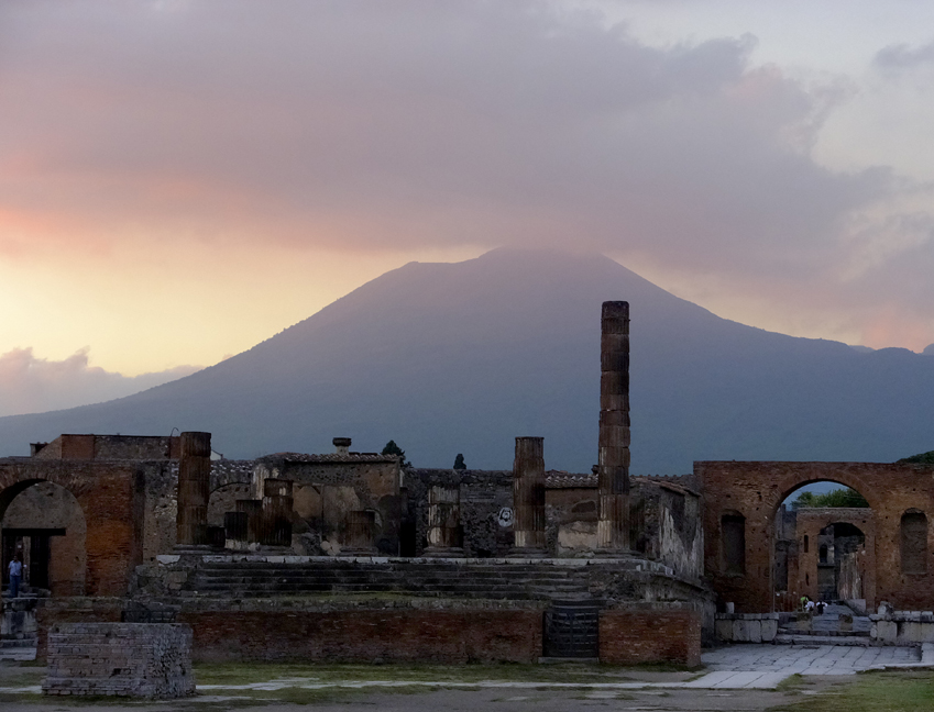 In the distance looms Mount Vesuvius, the source of the ash that buried the town. One can imagine how frightening it must have been to look up and see fire and smoke belching from its top.